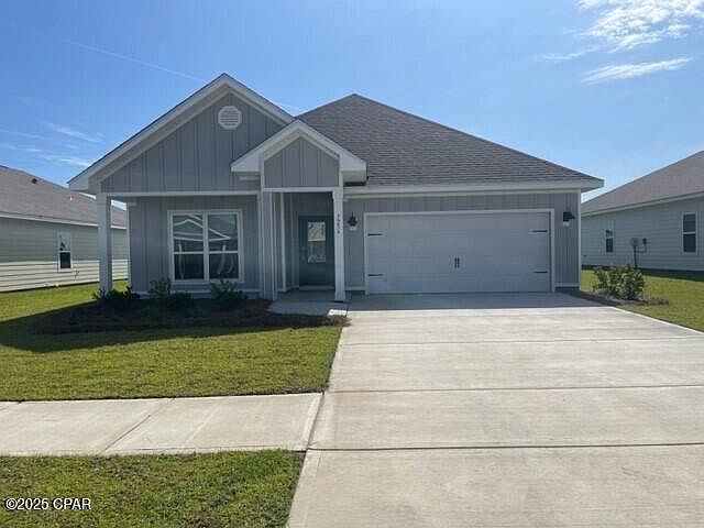 The Rhett floorplan is a 4-bedroom 2-bath, an open concept floor plan, with a boasting 1,799 sq.ft. The Rhett floorplan has upgraded finishes throughout. You will find 9-foot ceilings with 10-foot trays and beautiful crown molding. The Rhett also has EVP flooring, granite countertops, a large kitchen island with cabinetry on both sides underneath and brushed nickel hardware. This floorplan has energy efficient windows to allow lots of beautiful natural light. The primary bathroom has a beautiful garden tub, perfect for relaxing, and a spacious shower with a glass enclosure. All of these homes come with Deako lighting and Safe Haven smart home systems. Hodges Bayou is just a short drive to schools, restaurants, beaches, and all that Bay County has to offer. Family time can easily be enjoyed biking or taking evening walks to catch those gorgeous sunsets over the bayou. Sidewalks wind throughout for you to enjoy nature at its finest.