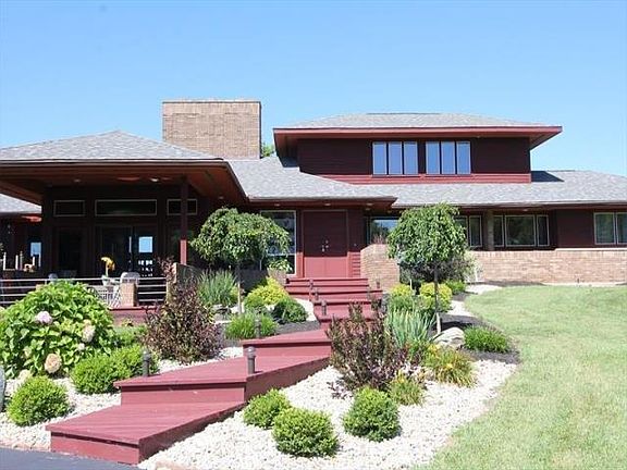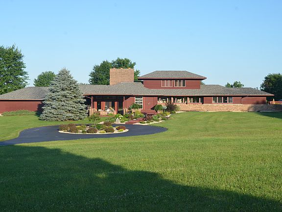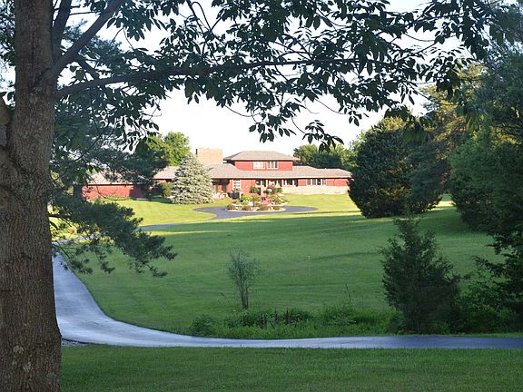 Wow! Beautiful rolling 5-acre lot with Frank Lloyd Wright inspired Redwood Ranch with beautiful views from every window! So many updates including new carpet throughout first floor, wood flooring in basement and freshly stained decks. Don't miss out on this 4 bedroom, 3 full bath with a finished lower level rec room. Sunken great room has cathedral ceiling with full stone wall fireplace. Walk thru to a formal dining area & family room with 2nd wood burning fireplace. The 4th bedroom is on the 2nd level with private bath. The spacious rear deck has an awesome view with hot tub & in-ground 12 foot heated pool (new liner 2019) surrounded by fencing & storage shed.