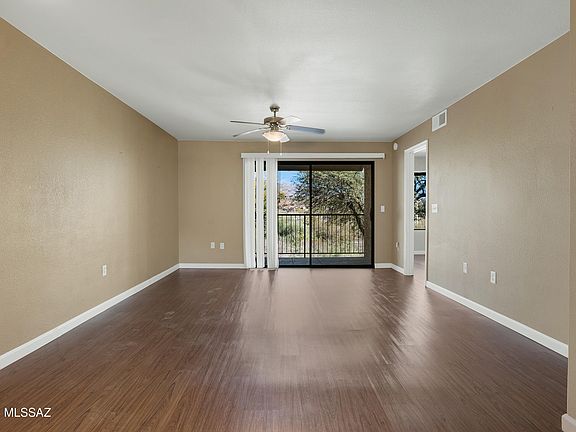 Experience elevated desert living in this immaculately maintained 2-bedroom, 2-bath condo nestled within the gated Villas at Sabino Canyon. Perfectly positioned on the second floor, this residence showcases breathtaking Catalina Mountain views while backing to a serene wash—offering exceptional privacy and front-row seats to local desert wildlife. The desirable split-bedroom floor plan is ideal for both everyday living and hosting guests, complemented by newer wood-laminate flooring and a recently installed A/C for year-round comfort and peace of mind. Step onto your private balcony and unwind as you take in the sweeping mountain scenery and tranquil desert surroundings. Residents enjoy resort-style amenities, including a sparkling pool, soothing spa, and well-equipped fitness center.