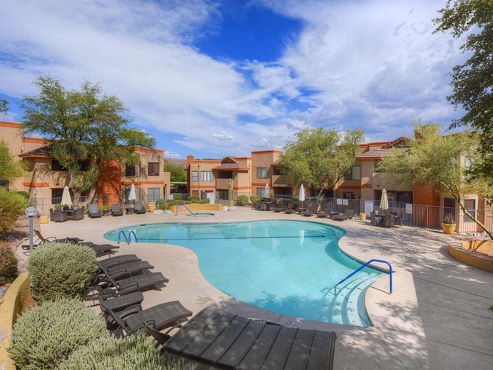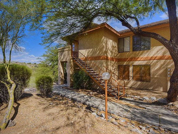 This is THE BEST unit in Villas at Sabino Canyon Condo Complex! Gorgeous, updated end unit, ground floor, 1152 sq ft, 3 bedroom, 2 full bath unit with Mountain views & privacy. Property comes with one covered parking space and furniture can be purchased on a separate bill of sale. Neutral ceramic tile, charming fireplace, updated kitchen with granite counter tops & stainless appliances (which all stay), Lots of windows with wood blinds, streaming sun light with views galore of open space and Mountains. Storage closet off covered balcony just adorable. Newer A/C to boot! Come take a look.