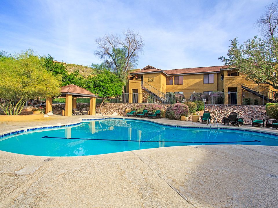 For more information on this property, contact the Listing Agent, Rebecca Maher at (520) 237-3939 or Tucson@SoldByRebecca.com. Immaculate 2 BR/2 BA Foothills condo in gated community at Villas at Sabino Canyon. Ground level unit features split bedrooms, ceramic tile, new carpet and freshly painted. Remodeled with a granite kitchen and bathrooms, stainless steel appliances. Premium north facing location with private patio that backs common area. Enjoy mountain views, sunsets and desert wildlife. HOA includes covered parking, pool, fitness center, trash, water, and sewer.