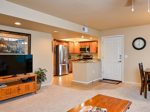 Price Reduced! Rare 3BR/2BA updated condo in Sabino Canyon! Second floor unit in gated community is being sold fully furnished and ready for immediate occupancy. Great rental potential too. Custom upgrades include granite counters throughout, new 2018 stainless steel kitchen appliance package & sink faucet, washer & new 2017 dryer, 2016 water heater and garbage disposal. Custom blinds on all windows and new programmable thermostat added in 2016 .Owner has made this home feel like new. Light & bright great room opens to kitchen. Large bedrooms, storage closet on private balcony. Tucked into the back of the condo community & just steps from the beautiful pool, spa and fitness room. HOA includes water,trash,sewer, exterior bldg, roof & pest control. Desirable District 16 Foothills locatio