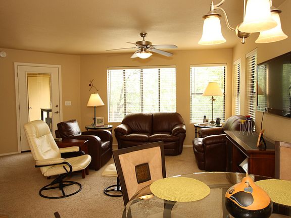 FULLY FURNISHED: Beautifully Appointed 1 bedroom, 2 bath Upstairs Condo in the Heart of the desirable Catalina Foothills. Gated community within minutes of Sabino Canyon Hiking Trails, restaurants, grocery stores & shops. Spacious Living Room lots of natural light. Kitchen with granite counters open to dining area and living room. Covered balcony overlooks peaceful greenbelt area. Full size Washer/Dryer .Community Features a beautifully appointed community pool and spa and a nice exercise room. LAND LINE OFFERS UNLIMITED LONG DISTANCE FOR CALLING IN US AND CANADA! Pool is Heated in winter months. Covered parking very close to unit. This is a must see upstairs condo! Dec-Apr Rate $2300/mo. with $200 utility allowance. COVID-19 restrictions may impact access to community amenities.