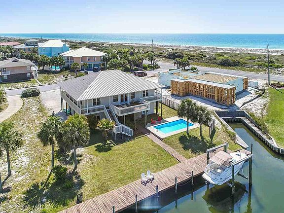 $85,000 in Rental Projections!!! See documents. Fantastic canal front front home with 4 bedrooms and 2 baths upstairs in 1950sqft with a 750sgft mother-n-law area downstairs with a full bath and screened in porch with its own separate entrance. The home has 85ft of docks on the canal with a 10,000lbs lift with a short 3min ride to Ole River! Come enjoy the Oasis of the backyard with a inground heated pool and beach access across the street. Wrap around decks with views of the Gulf of Mexico!! This home is perfect for the investor or second home!! Parking for 10 cars