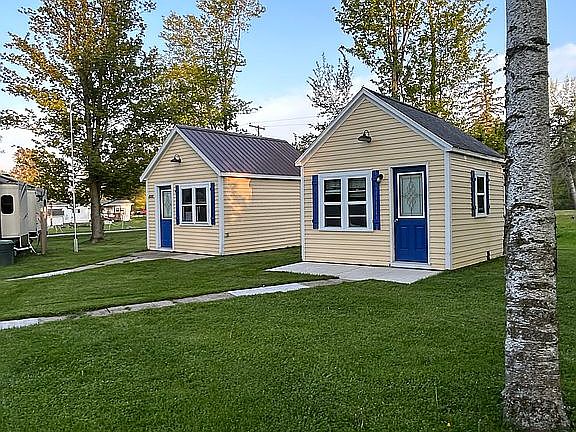 2 newly remodeled seasonal cabins , 2 sheds, and a 36' 2014 Keystone-Loredo located on 0.45 acres. Cabin 1: 12' x 16' w/vaulted knotty-pine ceilings and walls decorated in nautical theme. Has fully furnished kitchen, dining area, 3/4 bath. Tv/ loveseat. Cabin 2: Queen-size bed, knotty pine ceiling, and new vinyl plank flooring. Back shed measures 8' x 16' w/ concrete floor. Front shed measures 8' x 10' w/concrete floor. Keystone-Loredo description is included in pictures. Property has electric, septic, and city water. Priced to sell. No land contracts. No realtors please.
