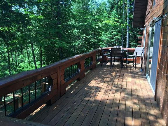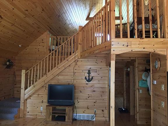 Peace & Quiet at this gorgeous riverfront home. Large windows and a wrap-around deck provide breathtaking views of the water. Trees surround the property providing plenty of privacy. Enjoy wood floors and an open floor plan with a cathedral ceiling. A gas fireplace is at the center of the living room. The upper level Master Bedroom has a private bathroom and overlooks the river. The 3-car garage was built in 2010 & has electricity and a concrete floor. There's lots to love about this place!