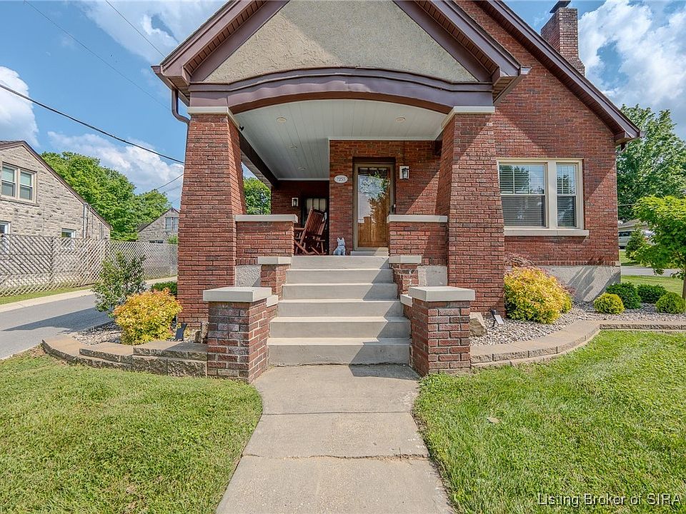 This Craftsman-style bungalow is bursting with character, charm & thoughtful updates throughout. Perfectly positioned to enjoy the Lanesville Heritage Festival from your covered wraparound porch, this home invites you to slow down and enjoy the best of small-town living. Step inside to beautifully refinished hardwood floors, a cozy original fireplace flanked by glass-doored built-ins, and elegant arched opening that leads to a gracious dining room. The kitchen offers abundant cabinetry, full stainless appliance package, and cozy breakfast room that doubles as a sunroom or office. The main-level primary bedroom includes a private den/flex room and luxurious tiled bath with double vessel vanity and walk-in shower. A second fully updated guest bath features a soaking tub, and the main floor laundry/mudroom adds everyday convenience. Upstairs, you’ll find three additional bedrooms, each full of charm and character, along with more gleaming hardwood floors. There’s an unfinished basement for storage, and the outdoor living spaces are a dream: a covered breezeway, covered patio with string lights and power, 2-car garage & separate garage/shed. The backyard has been enhanced with retaining walls, French drains, and epoxy-coated patios & garage floor. Green features include solar panels for low utility costs, and the home features lots of updates, including new roof in 2024. There’s even potential to build a guest house, custom pole barn, or separate dwelling on the extra lot space!