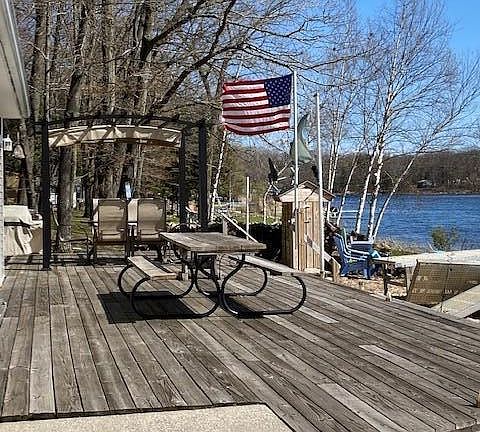 A Great opportunity to Share a Beautiful 3-bedroom, 3-full bathroom Cottage with your family or friends post COVID-19 isolation. This Waterfront Beauty can be purchased Turn-Key boasting new appliances, new flooring, new plumbing, and fresh paint. Enjoy the walk-out water frontage consisting of Beach Sand to a dock on beautiful All Sports Gunn Lake! Don't wait on this - Summer is right around the corner!