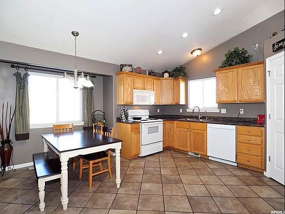 Cute home in quiet area in the Ranches. Amazing view of Utah Lake. Three tone paint throughout and vaulted ceilings in formal living room, kitchen, and dining area. Big family room off kitchen. Jetted tub in master bath. Big backyard with tons of room for kids or pets to play and garden boxes complete with drip system. Established grapes, raspberries, blackberries, and an apple tree. Two extra bedrooms and bathroom in basement. Call to see it now!
