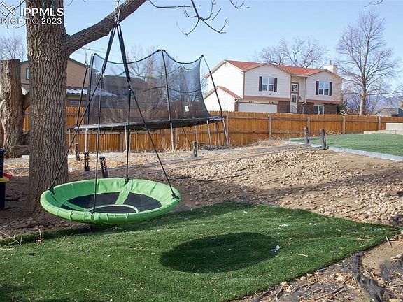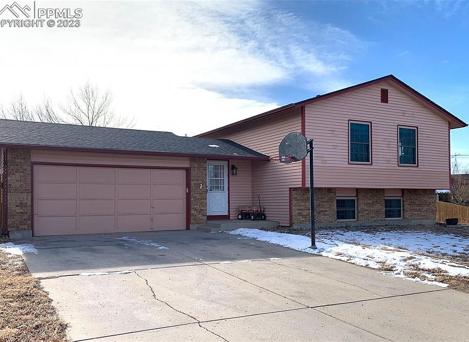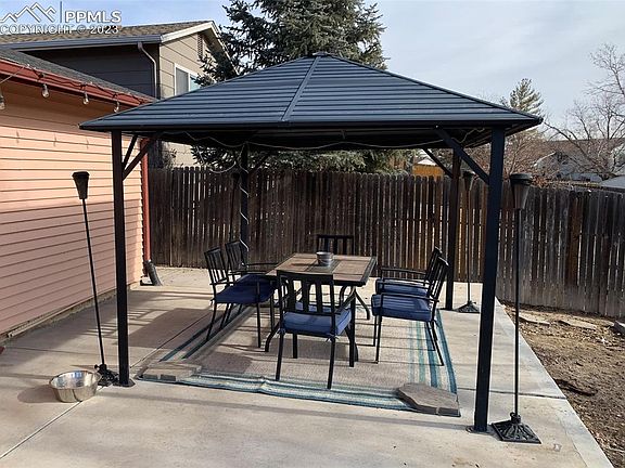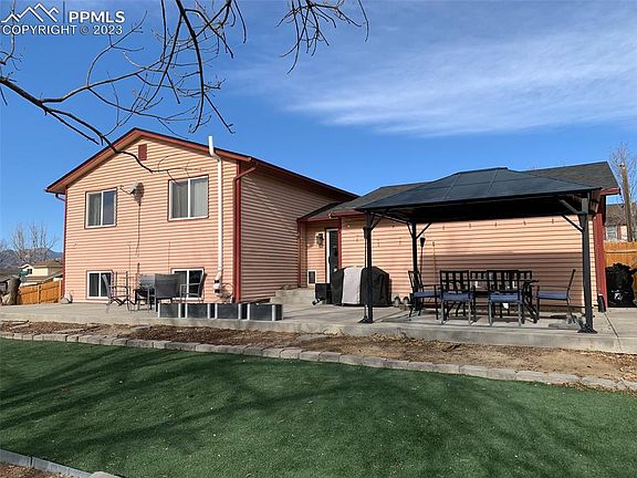 Come check out this wonderful 4 bed, 2 bath, 2 car garage located in Sunrise Ridge of Widefield. The home is located on a corner lot and has a large back yard with a large concrete patio and gazebo. The home has a big garden level basement with two bedrooms and 1 bath. The family room is spacious and for setting up a large entertainment area. Upstairs host two more bedrooms and a bathroom. The kitchen has recently been updated with new counter tops, cabinets, pantry closet, and a sitting area. As you sit in the living room and look out the windows there is a great view of the mountains and Pikes Peak in the distance. Come check out this home as there is so many endless possibilities for entertaining family and friends inside and out. Schools and shopping are within walking distance. This home won't last. Come see it today.