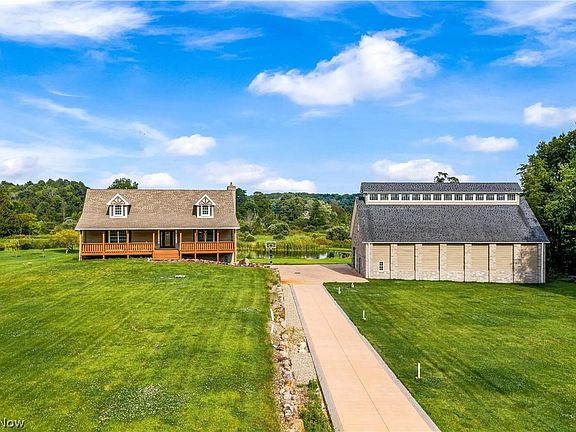 Welcome to 7255 River Styx. Live in the country but near so many amenities! This incredible, 2,800 square foot home sits on over 7 acres. The expansive property features a paved driveway with fully stocked fishing pond, and beautiful rocky landscaping. There is also a large, two-story building / shop on the property (40 x 70) perfect for running a business, hobby projects or car storage (fits nine cars). The lift in the shop (could be available for right price). As you enter the home you will be in awe of its timber frame construction and exposed, powder-coated steel beams. The style is the perfect mix of rustic and modern with an open floor plan that is great for entertaining. The center piece of the family room is a full stone wall with fireplace and hearth. The kitchen is state-of-the-art with high-end, solid hickory cabinetry and stainless-steel appliances. Travertine and heart pine hardwood floors run throughout home. There are some finishing touches still to be done, but this will allow the future owner to put their own touch on the home. Much of the finishing material is on site. If finished, the basement would add an additional 1,100sqft and outbuilding second story could be used as a mother-in-law suite, framing complete, 10ft ceiling and connected to the septic. The front of the home has a large porch and off the back is a 2-story deck overlooking the backyard pond and breath-taking views. Dont miss your chance to own this home!