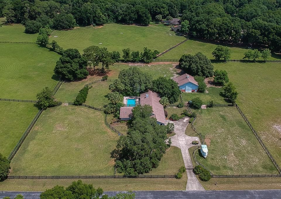 This mini farm is a must see! In a highly desirable gated community close to shopping, restaurants, hospitals, schools and more! This spacious 4 bedroom, 3 bath home has a large open kitchen and a breathtaking resort style custom pool w/waterfall, large covered patio and tiered decks. Great for entertaining! Riddled with beautiful mature oaks, as you walk out to a park-like setting to the Morton barn where you will find 2 stalls, a large climate controlled storage area for hay, feed and tack. Would be easy to add more stalls. Barn also has a manure compost system. 15minutes to World Equestrian Center and Florida Horse Park!Tile floors and carpet were replaced in 2014. In 2018, HVAC was replaced and pool was resurfaced. New hot water heater in 2019.