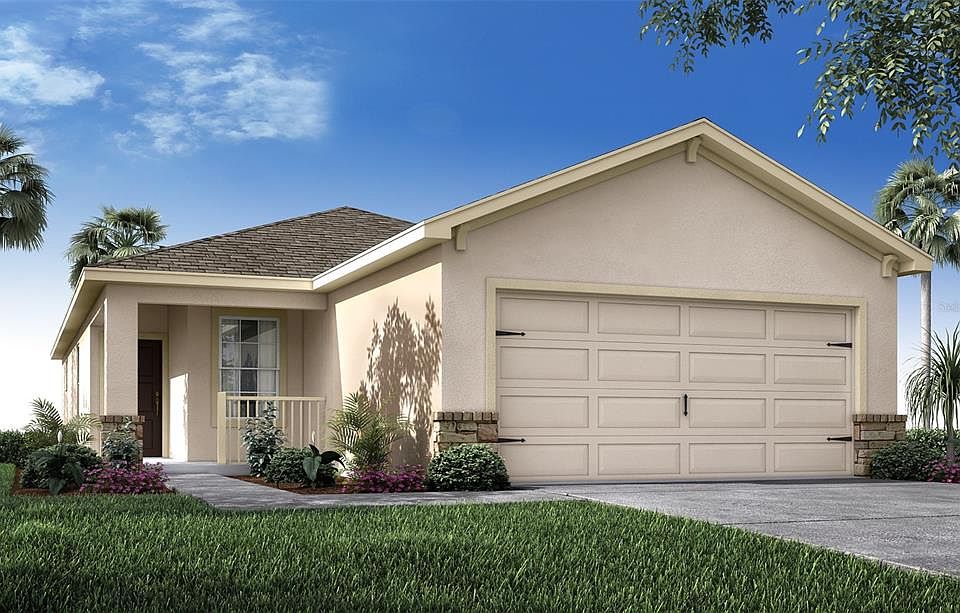 New construction home with 1,486 square feet on one-story including 3 bedrooms, 2 baths, and an open living area. Enjoy an open kitchen with espresso cabinets, Silestone countertops, Samsung stainless steel appliances, pantry, and a spacious island, fully open to the dining café and gathering room. The living area, laundry room, and baths include luxury wood vinyl plank flooring, with stain-resistant carpet in the bedrooms. Your owner's suite is complete with a walk-in wardrobe and a private en-suite bath with dual vanities, a tiled shower, and a closeted toilet. Plus, enjoy a covered lanai, 2-car garage, custom-fit window blinds, architectural shingles, energy-efficient insulation and windows, and a full builder warranty. Please note, virtual tour/photos showcases the home layout; colors and design options in actual home for sale may differ. Furnishings and décor do not convey."
