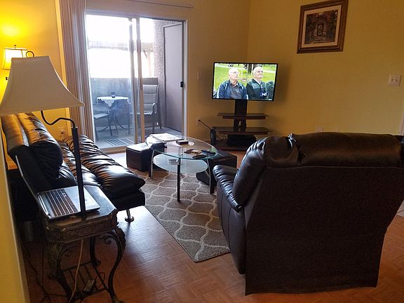 fully furnished with living room set bedroom set and queen bed set. rent includes water sewer and trash. Pool and fitness center with beautiful landscaping located off the 215 and rainbow. no pets and no smoking 1 bedroom with pool and fitness center 10 Mins from strip