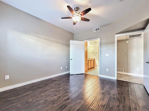 Fantastic First Floor 1 Bedroom Condo in a Prime Southwest Location! Crisp, clean, move-in ready! Resort style community is just 1 minute from the 215, convenient to restaurants, shopping, IKEA, Arroyo Market Square and much more. Privately owned and managed. Monthly income at least $4300, minimum credit score 640, small pet under 30 lbs may be considered. Spacious layout and contemporary paint design, featuring all porcelain tile floors -- NO CARPET -- with espresso laminate wood flooring in the bedroom. Kitchen has a breakfast bar with stainless steel stove and microwave, upgraded Samsung fridge. All appliances are included. Primary suite has a walk-in closet and huge bathroom. Satin nickel fans, lights, accents and hardware. Private balcony and assigned covered parking space. Tuscano Condominiums is a gated community with lush green landscaping, clubhouse with well-equipped gym, two sparkling pools, spa, playground, putting green, and roving security. Welcome home! Tenant pays $25/mo for water, trash, sewer. Owner pays HOA. $1450 security deposit, $200 cleaning fee. Monthly income at least $4300, minimum credit score 640. Pet under 30 lbs may be considered with minimum $400 pet deposit.