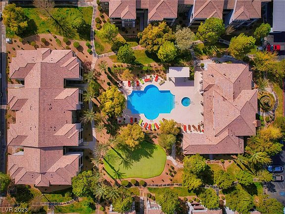 Rare 2nd Floor 3 Bedroom Resort-Style Condo in a phenomenal Southwest location! Convenient to the 215 Beltway, less than 10 minutes from the world-famous Las Vegas Strip, airport, Raiders Stadium. Nestled in the heart of shopping and dining galore, Durango Casino and Resort, The UnCommons, and The Bend make this a future proof investment! Say goodbye to carpet! Spacious floor plan features espresso laminate plank floors and porcelain tile, granite counters, warm 2 tone paint design, satin nickel fixtures and hardware. Primary bedroom has walk-in closet and en suite bathroom with dual sinks and soaking tub. All appliances included. Private balcony and assigned covered parking. Well-maintained gated community has lush mature landscaping, clubhouse, 2 sparkling pools, spa, fully equipped fitness room, playground, roving security. HOA fees include water, trash, sewer. Enjoy the benefits of living in a state with no individual or corporate income taxes. Don't miss this opportunity!