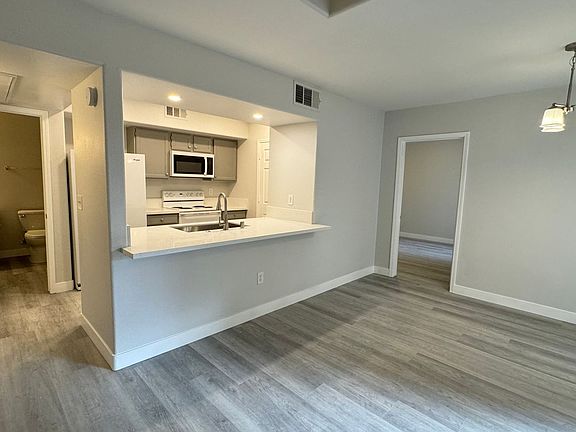 NEWLY RENOVATED!! LOVELY AND MODERN 2 bedrooms! Luxury vaulted ceiling Living room creates open and spacious feeling. Beautiful cabinets and NEW countertops, faucets, custom paint and much more. This floorplan features a split plan with two bedrooms both with walk-in closets. Community has sparkling pools and spa, fitness center, clubhouse and more! Excellent location to shopping, restaurants, 215 freeway access not far from the airport.