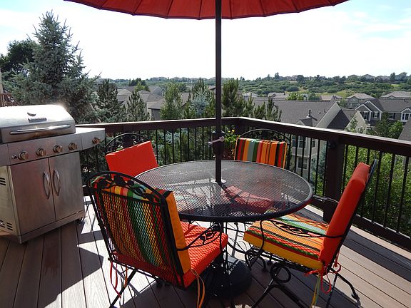 DonâEUR(tm)t miss this stunning Castle Pines North home with amazing views!! This beautiful home features 4 bedrooms, 3.5 bathrooms and nearly 4000 sq ft of living space. The first floor features an abundance of windows providing a ton of natural light, vaulted ceilings, plantation shutters, and newly painted interior. The spacious kitchen comes equipped with newly refinished cabinets, cabinets and more cabinets. Entertain in style while enjoying the great views on the trex deck or in the expansive walk out basement that has room for all kinds of fun. This beautiful home also boasts central vac system, electrostatic air filter, new AC (2019), surround sound, custom master closet and itâEUR(tm)s very own sauna. The driveway is south facing to minimize your shoveling. Located within walking distance to the pool. Easy access to trails, parks, schools and the highway.