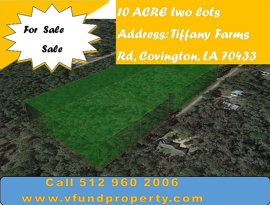 This 10.12 acres can be your dream home. Tucked away in a suburb area of Covington, yet convenient access to highway 190. Property Information County: St Tammany Parish , LA LOT 3 + 4 TIFFANY FARMS SUB Google map: https://goo.gl/maps/t3K5okVP3NrxfVjr5 Access: Paved Road On Tiffany Farms Annual Property Tax $446.20 Ground elevation (GE) : 27.6 ft Flooding Zone: AE Zoning A2 Suburban district Regular homes and modular homes, mobile home or RV is not allowed Electricity Cleco 800-622-6537 Water: need Well, Sewer: Need Septic Tank Road frontage: 600 feet, each Lot dimension: 521 x 461 feet two lots about the same dimensions Tiffany Farms Rd, Covington LA, 70433 Disclaimer: All information listed is deemed accurate but not guaranteed. So, the buyer is responsible to verify all information before signing a purchase agreement. The warranty deed will be transferred at closing.