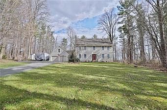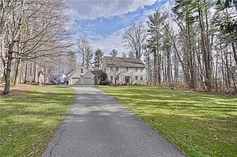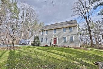 BONUS: Inspection on file! If you have been searching for a home that radiates country charm and boasts a spectacular private backyard oasis then look no further! You'll fall in love with this 2-story Colonial set on ~3 partially wooded acres. This 4-bed 3.5-bath home has a 2-car garage and is move-in ready, perfect for entertaining! The kitchen has ample cabinet space, an island, butlers pantry, wet bar and open floor plan into family room. There's a large dining room, sunroom, half bath and a large bedroom with a full bath. Upstairs has a huge master bedroom with two walk-in closets and an ensuite bathroom plus 2 more nice sized bedrooms and a full bath. The backyard has expansive Trex decks, in-ground pool, garden, and built in firepit. Extra bonus features: a pellet stove insert, central vacuum, first floor laundry/mudroom, and a finished basement with additional living space and plenty of storage.