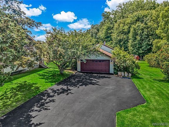 Welcome to 7256 Ridge Road! Amazing opportunity to own this property on a 3+ acre parcel, complete with a 5+ car garage and large, picturesque pond with fish, turtles, and other wildlife! This 5 bedroom home has 3 bedrooms and 1 full bathroom on the first floor, so it can live like a ranch, with 2 additional bedrooms, massive closets, and a potential 6th bedroom/storage space on the second floor. Cozy, covered front porch enters the living room full of charm and character with original, natural woodwork, regularly maintained wood burning fireplace (NRTC) stained glass builtins, and french doors that enter the formal dining room. Fully applianced kitchen with plenty of cabinet space, and a sunroom the exits to the fully fenced rear yard. Full basement with washer/dryer, glass block, and exterior walkout. Other updates include: Complete bathroom remodel '22, upgraded electric service/panel '22, A/C blower '22, full tear off roof '21, driveway '21, boiler/tankless HW '20, chain link fence '17. Open house Saturday, July 1; Saturday July 8; Sunday, July 9 all from 1-3pm. Offers, if any, will be reviewed Wednesday, July 12 at 2pm. Showings begin at the first open house 7/1 at 1pm.