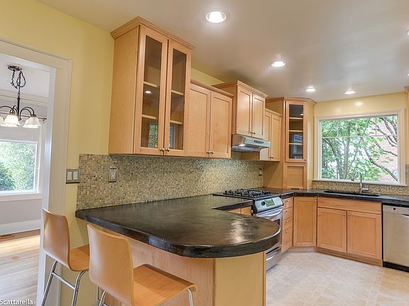 This updated 1928 Portland style home sits comfortably between Multnomah Village and Gabriel Park in Southwest Portland. The main level includes oak hardwood floors in the living room, dining room and main level hallway. The home has three bedrooms and 1.5 bathrooms. The master bedroom has an adjoining 'sewing' room utilized as a full walk-in closet. The updated kitchen includes concrete counters, under mount sink, gas stove and refrigerator with water connection. A sitting nook sits adjacent to the kitchen and walk-in pantry. The basement includes a full family room, storage and canning room. A large backyard with play structure and tree fort add to the .22 acre property.