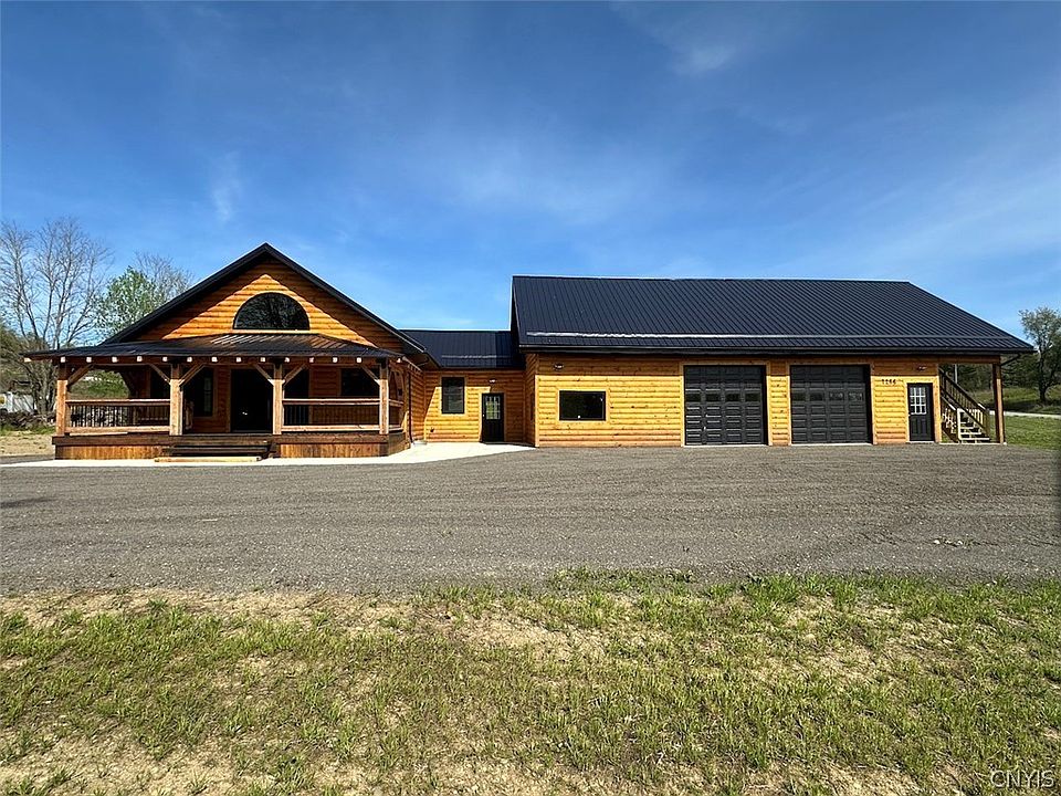 Welcome to your new dream home in the country! This log home offers a perfect blend of rustic charm and modern comfort located in Fillmore NY. As you step inside the home, you are greeted by an inviting country kitchen complete with a breakfast bar, ideal for casual dining or entertaining guests. The open concept dining room and living room create a warm and welcoming atmosphere, highlighted by a cozy gas fireplace. Crafted with larch tongue and groove, the beams highlight the home’s natural beauty, while high cathedral ceilings add to its spacious feel. The master bedroom features a walk-in closet and its own private bathroom with a tiled shower. An additional two bedrooms and a full bath offer plenty of space for family or guests. The large mudroom provides ample storage. The full basement can be finished off for even more living space.