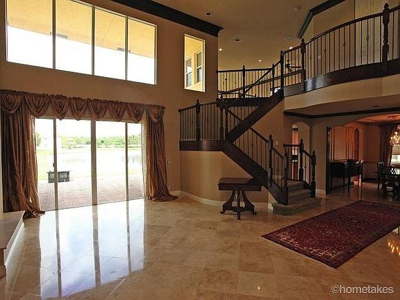 BEAUTIFUL ''ANDREA'' MODEL HOME WITH 5 BEDROOMS, LOFT/DEN AND ATTACHED 3 CAR GARAGE. GORGEOUS SATURNIA/MARBLE FLOORS ON THE DIAGONAL. CUSTOM CROWN MOLDING, TWO STORY CEILING IN GRAND/LIVING ROOM WITH BEAUTIFUL FIREPLACE. MASTER BEDROOM SUITE LOCATED ON THE 1ST FLOOR WITH COFFERED CEILING, WOOD FLOORS, TWO WALK IN CLOSETS. MASTER BATH HAS A JACUZZI TUB, SEPARATE SHOWER. GUEST/2ND BEDROOM AND DEN/STUDY IS ALSO ON THE 1ST FLOOR. DREAM KITCHEN WITH UPGRADED WOOD CABINETS AND APPLIANCES. GRANITE COUNTERTOPS, CENTER ISLAND, BREAKFAST BAR, ETC. GREAT FLOOR PLAN. UPGRADED WROUGHT IRON AND WOOD STAIRCASE WHICH LEADS YOU TO THE MEDIA/LOFT AREA AND MORE BEDROOMS. FENCED BACKYARD WITH AN OVERSIZED/EXTENDED PATIO. TRANQUIL/PEACEFUL LAKE VIEWS..LAKE VIEWS..