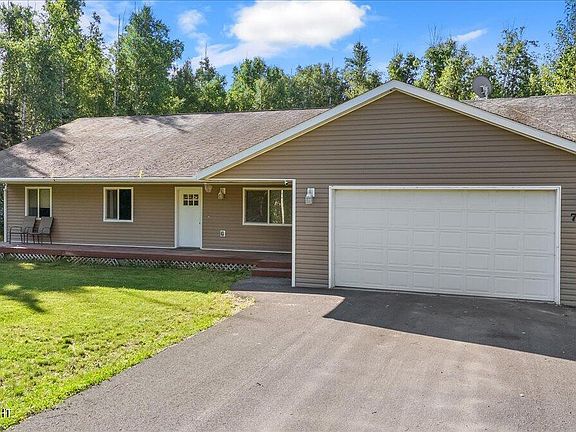 PRICE REDUCTION!! Selling As-is/Where-is! Welcome to this charming ranch-style home, nestled on a serene 1.01-acre lot just outside Wasilla city limits. Built in 2006, this 1,738 sqft residence offers a perfect blend of modern comfort and rural tranquility. Featuring 3 spacious bedrooms and 2 well-appointed bathrooms, this home is designed for easy, single-level living.The open-concept layout seamlessly connects the living, dining, and kitchen areas, creating an inviting space for both daily living and entertaining. The kitchen boasts modern appliances, plenty of counter space, and storage, making meal prep a breeze. The master suite includes an en-suite bathroom with a tub, perfect for unwinding after a long day. Step outside to enjoy the expansive yard, ideal for gardening, outdoor activities, or simply soaking in the natural beauty that surrounds you. The property is located on a low-traffic cul-de-sac, ensuring peace and quiet while still being conveniently close to town amenities. A two-car garage provides ample space for vehicles and additional storage. Whether you're looking for a peaceful retreat or a place to grow, this property offers the best of both worlds country living with easy access to city conveniences. Don't miss the opportunity to make this home your own!