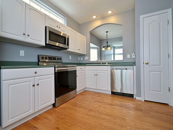 Wonderful end unit condo on cul-de-sac street. Updated master bath shower, fresh paint and new carpet throughout. Newer stainless steel kitchen appliances. Super convenient location to schools and shopping. Wood burning fireplace, finished lower level with wet bar and walkout to nice patio and yard. Large closets and first floor laundry. Immediate occupancy.