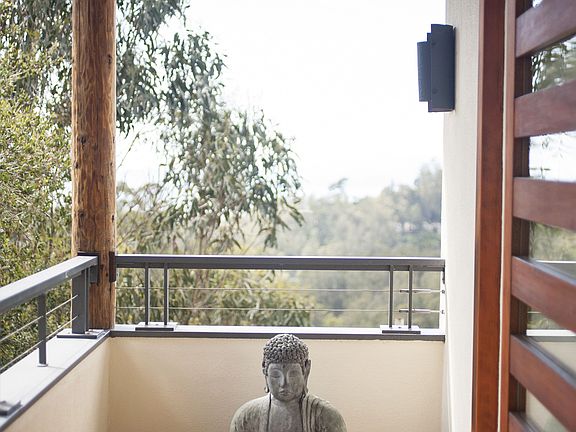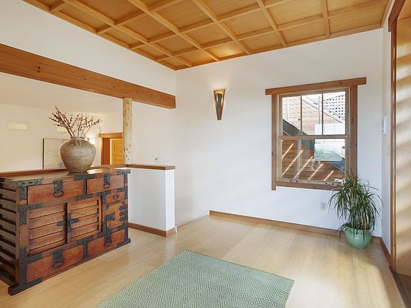 Modest exterior and beautifully crafted interior with 3+BR 4.5BA and a stunning SF Bay and GG views from all levels. Spa level with sauna has a private entrance, glass garage doors to an oversized deck. Ideally located between city owned lots, high above the hustle. Don't miss this stunning home.