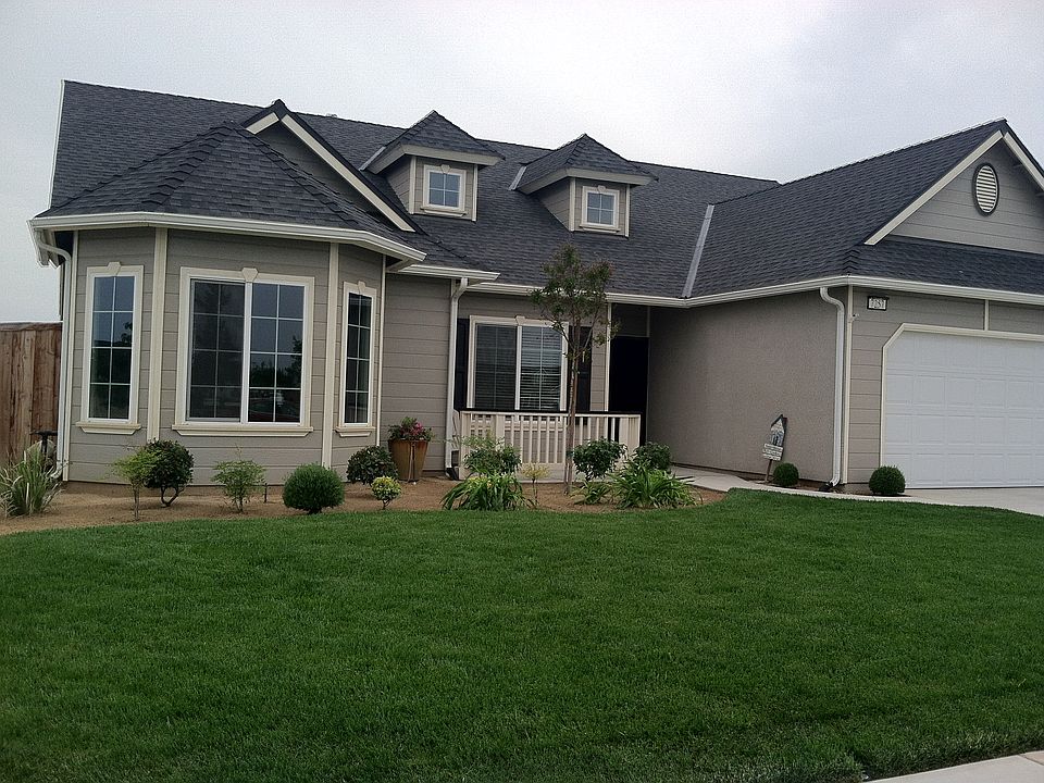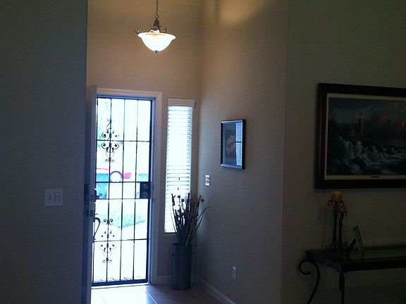 Better than new, this 2 yr home is in pristine condition. Granite in kitchen & both baths, extended tile flooring everywhere except bedrooms, vaulted ceilings, extended dining area. Large back yard boasts roomy covered patio with added maintenance free Alumawood patio cover, rain gutters with drainage to street, concrete walk on side of home, concrete pad and shed in rear of yard. Garage comes complete with upper shelving & work bench ready for new owner (Electrical strip above bench in garage does not stay.) Security screen door and keyless entry at front - huge park directly across the street perfect for a game of catch, kites, picnics or just a serene view from the window.