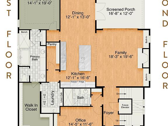 1st floor features a large office or guest suite and primary bedroom complete with trey ceiling, stunning bathroom with a massive tiled walk-in shower, free-standing tub, and Pinterest-worthy oversized closet linking directly to the laundry room.