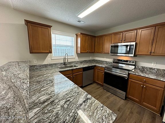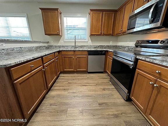 Fresh paint, new LVP flooring, new efficient HVAC in 2024, roof replaced 2023, all new stainless appliances, with exception of dishwasher. Brand new granite countertops, new plumbing and electrical fixtures. Front yard recently sodded and privacy fence being run across back to close in back yard. Vaulted ceilings, attached garage, storage shed, and convenient location make this home a ''no brainer.'' Backs up to the Military Cutoff Extension yet feels private and quiet. Front yard maintenance included in price. No smoking, pets negotiable. Call to see this great home today.