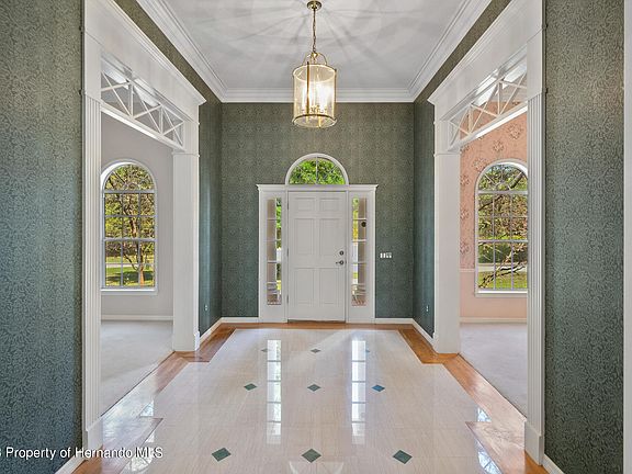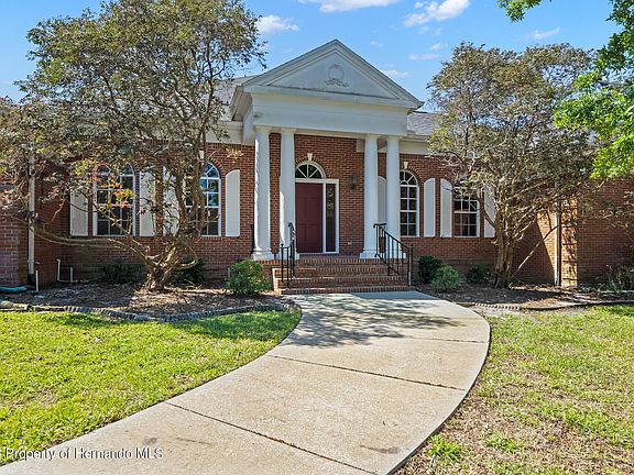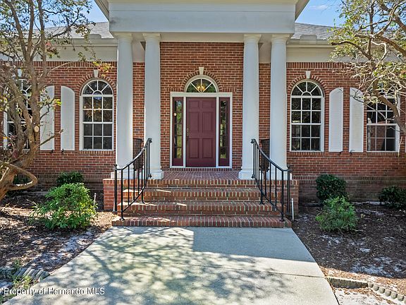 Welcome to your dream home located in a prestigious gated community. This stunning FOUR BEDROOM PLUS OFFICE home is situated on a sprawling 1-ACRE LOT, offering plenty of space and privacy for you and your family. This one-of-a-kind home is located on a quiet cul-de-sac in the guard gated community of the Waters of Weeki Wachee that offers tennis courts, private roads, a basketball court, walking trails, and underground utilities. This charming brick home features a NEWER ROOF (2017) and an inviting front entryway with double front doors. Step inside and you'll be greeted by a large foyer with formal living and dining rooms on each side, perfect for entertaining guests. The home boasts a spacious kitchen complete with double wall oveNs and a brick faced range hood, 42'' wood cabinets, and plenty of cabinet space that is open to the family room that features a GAS FIREPLACE. Each of the 3 guest bedrooms is generously sized and features plush carpeting, ample closet space, and large windows that let in plenty of natural light. Two of the guest bedrooms share a Jack-and-Jill style bathroom and the third bedroom has a private bathroom. The master suite is a true retreat, complete with a spa-like en-suite bathroom featuring a soaking tub and walk-in shower plus a huge walk-in-closet. The home also boasts a dedicated OFFICE SPACE, perfect for those who work from home or need a quiet space to focus. Outside, you'll find a beautifully landscaped yard with a HEATED POOL and plenty of space for outdoor activities. The pool area is the perfect place to relax and unwind after a long day, or to host summer BBQs with family and friends using the outdoor kitchen. You will be amazed at the attention to detail that has been given to this lovely home including charming window seats, HARDWOOD FLOORS, built-ins, A SIDE-ENTRY THREE CAR GARAGE and a central vacuum system. The Waters of Weeki Wachee community has a private park on the upper part of the Weeki Wachee River which is a crystal clear river and offers you swimming, kayaking, paddle boarding, boating, fishing or just sit and relax while you watch the manatees. Don't miss your chance to own this incredible property and start living your dream lifestyle today.