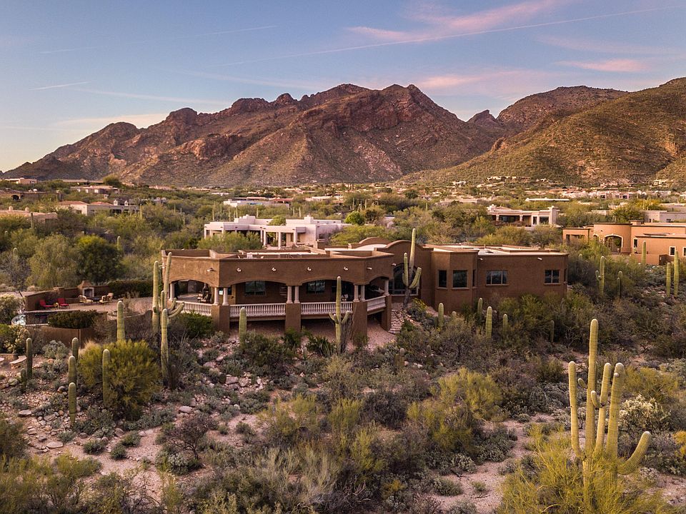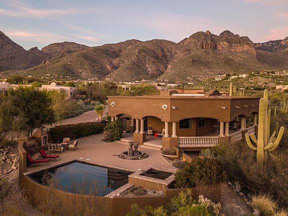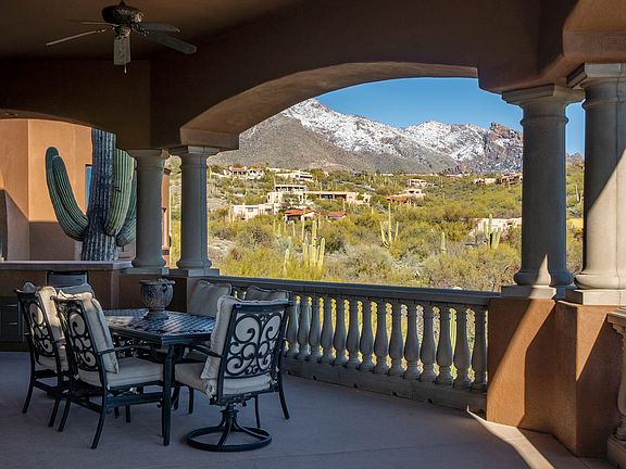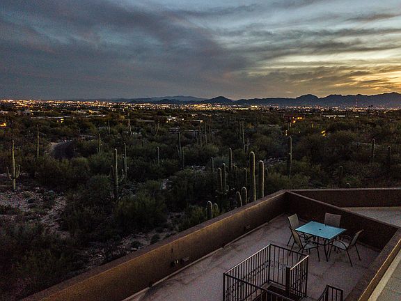 Stunning Pima Canyon home features panoramic views of the mountains and city. Meticulously cared for, the home boasts a chef's kitchen with Dacor appliances, large island, & choice of breakfast bar or a nook overlooking the desert to sip your morning coffee, split floorplan with glorious master suite (open your eyes in the morning to a gorgeous Tucson sunrise?) Entertainment options abound - the long patio to bbq while enjoying the mountains or city views, the paver pool area with infinity edge pool, spa or fire pit? Or head up to the roof top deck for a very special 360 degree view. Relax in the family room and catch up on the latest movies. The lot is 2.6 acres, so privacy is yours.