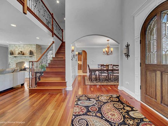 Newer construction in Long Grove's highly desirable Ravenna subdivision! Stevenson High School district! Quiet cul-de-sac lot! Over 6,000 square feet of living space! Highest quality construction! All brick and stone exterior! Brazilian Cherry Hardwood floors! Recessed lighting! Crown moulding! Spacious kitchen with granite countertops! Stainless steel appliances including Dacor double oven & microwave! Dacor gas range! KitchenAid commercial style fridge! Bosch dishwasher! Tile backsplash, 42" cabinets and soft-close drawers! Large porcelain tiled mudroom between garage and kitchen! Huge master suite includes indirect lighting and "uplighting"! Master features TWO enormous walk-in closets! Built in closet organizers! His and Hers Granite vanities, heated floors, Jacuzzi tub, and large walk in shower shower with body sprays!! Additional bathrooms featuring granite vanities and tile shower showers! Freshly painted in popular grey tones and white trim! High end lighting fixtures included! Intricate tray and coffered ceilings with beveled corners! Finished basement adds an additional bedroom and full bath, as well as recreation room, an area for a play room and tons of storage! Come and be impressed!