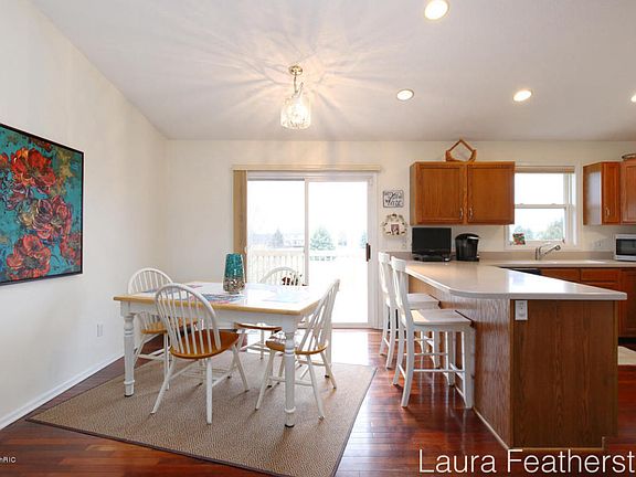Looking for a nice ranch home in Rockford on a huge lot? This is it! This daylight ranch offers four bedrooms and 3 baths on a 1+ acre lot in the great Russet Vista neighborhood. Beautiful cherry flooring throughout the main level. Solid surface counter tops and newer stainless steel appliances in the kitchen. The lower level rec room has brand new carpet and the fireplace makes for a cozy gathering space. The oversized three stall garage will hold all your vehicles, toys and lawn equipment. Sel ler is providing a one year home warranty at close, for buyer's peace of mind. HOA is very liberal - pools and outbuildings are allowed. Move in this spring and enjoy summer in Rockford - all the trails, festivals, outside dining and entertainment make it a wonderful community to live and play!