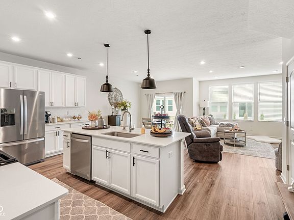 Welcome to easy living at Towns at RiverWest! This stylish 3-bedroom, 2.5-bath townhome offers the perfect blend of modern design, functional space, and unbeatable convenience. With 1,883 square feet of open-concept living, this home features luxury vinyl plank flooring, quartz countertops, a gas range, and a large kitchen island-ideal for entertaining or everyday living. Only one year old, this home is finished beyond builder basics with thoughtful upgrades: professionally installed blinds, upgraded lighting, kitchen hardware, and added convenience with all kitchen appliances, washer/dryer, and water softener included. Unwind on the cozy back porch or explore the vibrant nearby River West urban development, home to shops, boutiques, and dining. Plus, you're just minutes from the best of Noblesville, Westfield, Fishers, and Carmel with easy access to major highways and interstates. Additional perks include HOA-covered internet and cable TV for streamlined living. Don't miss your chance to own a move-in ready home in one of Noblesville's most desirable townhome communities!