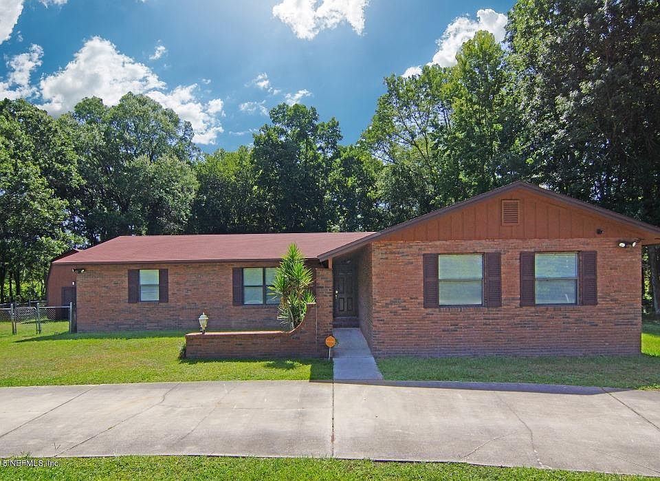 Looking for a private wooded piece of land & no HOA fees, but also want to enjoy living near city conveniences? This brick-front home nestled on 1.34 acres will fill the bill! Just a short drive to I-295, restaurants, OP Mall, NAS Jax, Cecil Field etc. 1,956 SF floor plan has a spacious living rm, adjacent dining area, updated kitchen that features raised-panel wood cabinetry & built-in microwave. Big Bonus Rm too for family movie nights, your home gym or hobbies. Master Ste has double-closets, there are 2 good size guest bdrms & a Laundry Rm w/shelves. New wood lam. flrg except in wet areas, many ceiling fans & 3 yr. old HVAC. Huge fenced yard bordered by tall trees offers room for pool, garden, pets, kids, hobbies AND more! Store your tools in the barn-style shed.