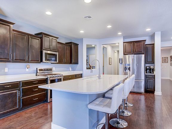 - Kitchen Features: Kitchen Island, Dishwasher, Refrigerator, Built-in Microwave, Range/Oven Gas, Walk-in Pantry, Non-laminate Counter