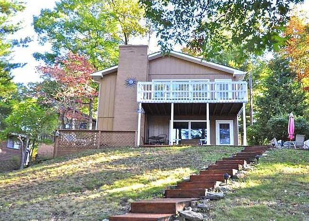 Lakefront home on Cordry Lake hardly used. Interior remodeled in 2009, new Bathrooms, new Kitchen, new flooring, new paint. Eat-in Kitchen with center island. Cozy Dining Room with floor to ceiling Brown County Stone fireplace, chandelier. Master Bedroom on main level. Laundry Room with cabinets, folding areas, window. Large Family Room upper level with second floor to ceiling Brown County stone fireplace. Lots of room for entertaining family and friends. Door out to upper Deck overlooking the lake. Bedrooms Two and Three upper level both with two windows, ceiling fans. Full Bath upper level. Side Patio offers more room for relaxing and enjoying your time at the lake. Covered Patio overlooks lake, horse shoe pit for more fun at the lake. Party Deck with fantastic 180 degree lake views, storage shed at Dock with pier for fishing or swimming. Easy walk to waters edge and easy unload to front door with plenty of space for parking.