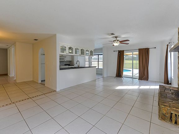 This home is spread out on an acre of land in the beautiful subdivision of River Country Estates. This community holds, a wonderful park with a calming lake, tennis and basketball courts. The roof was installed in 2017. A courtyard entrance leads you to this wonderful home. Decorative columns greet you to a formal living area. Tile floors flow through all the living and kitchen areas. A formal dining room is just off of the kitchen for easy serving. A bonus family room with loads of space and a stone fireplace that gives off warmth and appeal. The kitchen showcases white glass front cabinets and holds a breakfast nook with bay windows. Wood laminate flooring resides in all the bedrooms. Rustic wood doors and trim are a beautiful touch. Great closet space in the guest bedrooms along with ceiling fans above. A very large walk-in closet in the master bedroom and a master bath attached. Gracious space on the pool lanai, great for entertaining, or just relaxing. All of this overlooks the very private backyard surrounded by trees and the sounds of nature. Make this house your home and call today!
