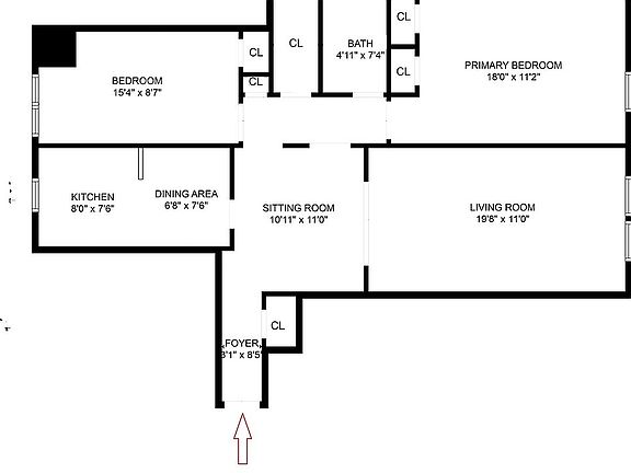 This spacious and sunny corner unit has a gracious foyer, a large living room, and a sitting area that can be used for a home office or dining area, a windowed kitchen, and very large closets throughout the entire unit. The primary bedroom has two large windows and closets. Hardwood floors throughout.