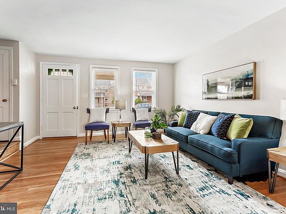 Welcome to 7259 Stratton Way- this all-brick townhouse has been freshly updated and is in move-in condition. This attractive home has an expansive covered front porch. Upon entering the front door, notice the original, beautifully refinished hardwood floors. The same gorgeous flooring is found throughout the main and upper levels. The entire home has been recently painted with a neutral color palate. The large, light filled living room with a convenient coat closet off to the side adjoins the formal dining room with a bay window. The kitchen boasts renewed solid wood cabinets along with the original deco hardware. The "Sparkling White" quartz countertop, new gas stove, microwave, newer refrigerator and new tile flooring complete the look. Upstairs is the "retro" bathroom with original ceramic tile walls and mirrored medicine cabinet. A new vanity and toilet are included along with an expansive linen closet providing ample storage. This level also contains 3 well-proportioned bedrooms. The finished basement has brand new flooring and can be used for any number of things - family room, office, additional bedroom, etc. The utility room houses a brand-new hot water heater and exterior door. There is a washer and dryer, laundry tub and gas furnace/central AC which was installed in 2017. There is a rear covered porch as well as a parking pad. The location is convenient to I-695, I-95 and mass transit. Come see why this will be the perfect home for a new buyer.