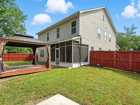 Entertainers dream! Step into this updated home that will be perfect for anyone! New interior and exterior paint! Cul-de-sac! Newer roof! Fully fenced in back yard that contains a stunning elevated covered gazebo with ceiling fans and lights! Strategically placed trees that line the back of the home to create true seclusion from the public. Inside, the 2-story foyer and grand room will greet you and take your breath away! Home is complete with family room that has an extended enclosed sunroom, separate dining room with wainscoting, and kitchen that opens up to the family room. At the top of the staircase is a landing area that will be great for a sitting area or office. The oversized owners retreat comes with a sitting room and en-suite. Upstairs also homes a laundry room and 2 more large bedrooms! Located just minutes from I-285, Hartsfield-Jackson Airport, top-rated schools, shopping, and dining, this home offers unparalleled convenience without sacrificing tranquility. With every detail thoughtfully curated and move-in ready, this residence is the perfect blend of style, comfort, and location. Preferred lender offering up to $1,500 in lender credit OR a one-year home warranty when buyer utilizes GRA.