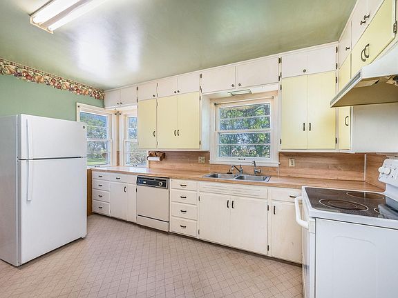 Secluded and private acreage setting with 5 acres located on pavement just south of Sherburn. 4BR/3BA and has the room you need, but needs some TLC. Oversized one car garage, plus another older one car, and two pole bulidings, one with concrete floor, the other with a dirt floor. The main floor has a large eat-in kitchen, a living/dining room that goes out onto the deck, one bedroom, the old bathroom which now has the laundry hookups, and a former bedroom which is now a large full bathroom. Upstairs you'll find beautiful hardwood floors, 3 more bedrooms, a full bathroom, and tons of storage including a cedar closet. The basement has a great room and kitchenette, plus a walk out to a patio-this space would be perfect for entertaining. This property is being sold AS IS. Seller providing a $25,000 credit to the buyer for septic replacement and plumbing repairs. Beautiful groves outside providing a nestled in feeling. This is your chance to turn your dreams into reality on an acreage!