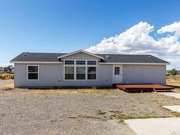 This home sits on two acres with a beautiful view of the Ruby Mountains. Features 3 bedroom and 2 full bathrooms. The master has a large walk in closet and sit down shower. Pellet stove is located in the living room for cozy warm winter nights. The garage/shop is sheet rocked with a built in room containing shelving and excellent lighting for your projects or storage. Lots of room for RV access and parking. This is a must see - schedule your appointment today!