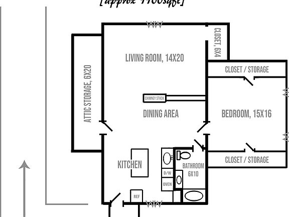 - Total interior livable area: 1,000 sqft