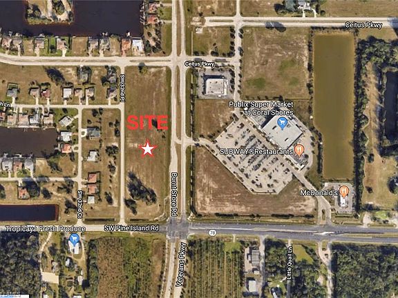 This corner of BURNT STORE ROAD And PINE ISLAND ROAD is just moments away from being purchased and developed and you can have a part in this incredible investment. It's no secret that this location of Cape Coral is desirable and growing fast! Commercial corner of Ceitus and Burnt Store Road which totals approximately 236,600 square feet with Corridor Land Use which allows for a variety of commercial uses i.e. Fast Food, Convenience store with pumps, financial institutions, retail,medical and more. As per City of Cape Coral utilities including water-sewer-irrigation will be available for hook up the later part of 2018/ Directly across from Publix Shopping Center, Walgreens, McDonalds. and soon to be 7-11 and Achevia Credit Union. Proposed Site plan available showing 40-50,000 sq.ft of rentable space. Call Today for More information! Multiple PIDs18-44-23-C3-05337.0070,18-44-23-C3-05337.0090.18-44-23-C3-05337.0110,18-44-23-C3-05337.0130,18-44-23-C3-05337.0150.18-44-23-C3-05337.0180,18-44-23-C3-.05337.0240,18-44-23-C3-05337.0280,and .0320..0340,.0380,.0420,and .0460 Buyer to assume any or all assessments. Assessment approximate payoff balance of $400,000.00.